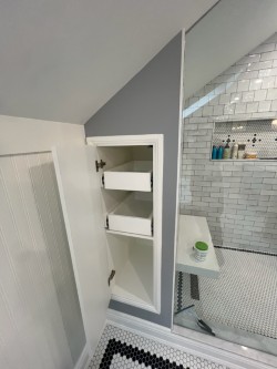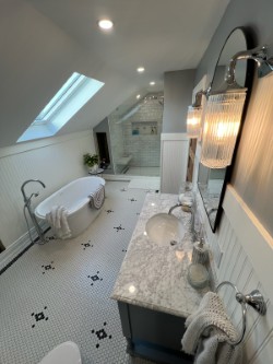 His most recent Bathroom Renovation in a century home in Cobourg was a true testament to his craftsmanship and versatility. Delivering century charm and finished carpentry to two bathroom renovations in this stately home. A full bathroom remodel, including a second-floor bathroom addition that stayed on budget from our first initial consultation with the homeowners.